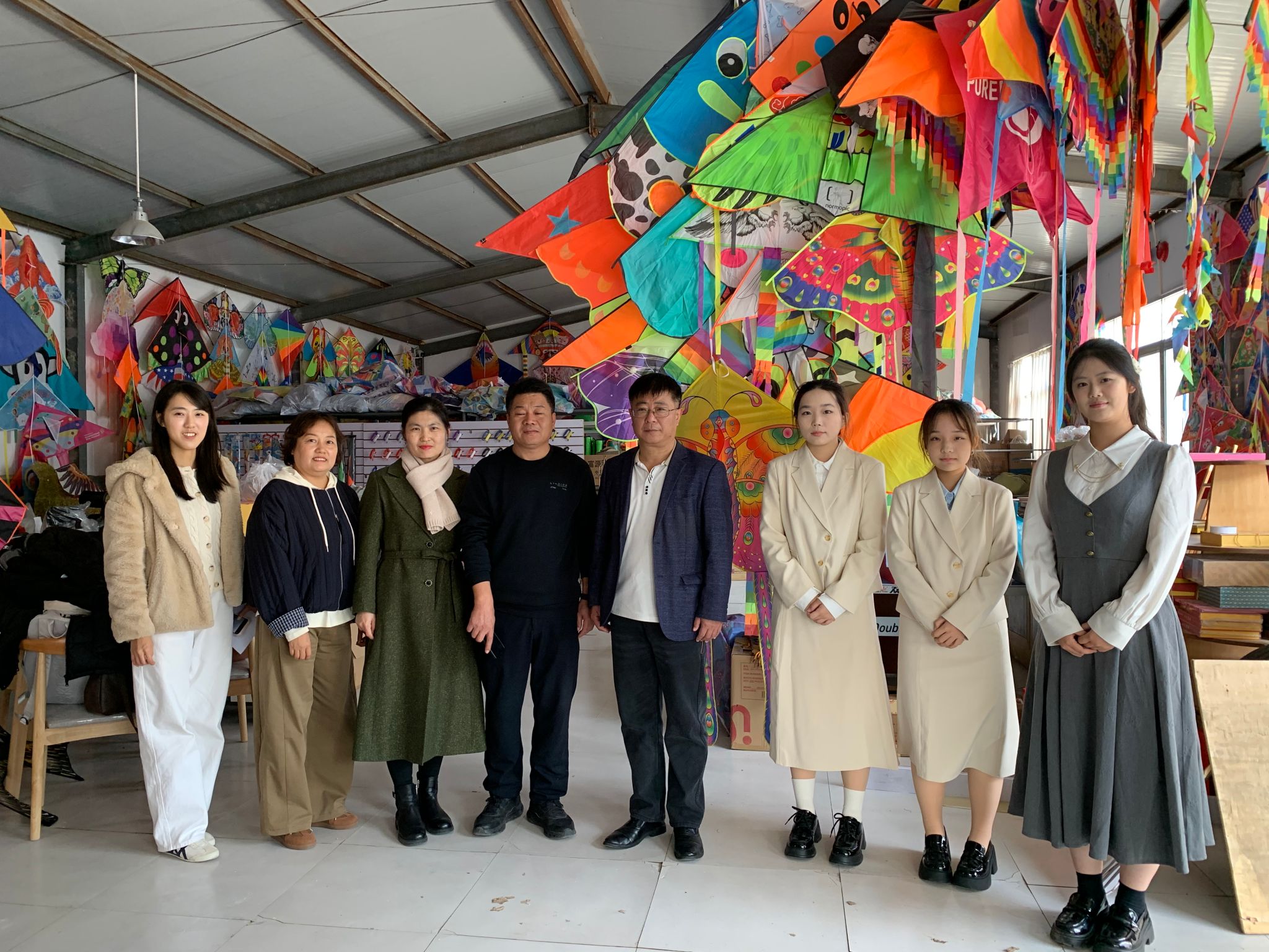 在鸢飞风筝有限公司负责人陪同下,国际商务学院师生实地参观了企业产品生产车间、展示中心以及跨境电商运营团队,详细了解企业发展历程、产品国际市场布局以及以风筝文化为特色的品牌出海路径。在随后的座谈交流中,国际商务学院负责人介绍了学院商务英语、国际贸易专业的人才培养特色与教学资源,表示将以此次交流为契机,聚焦行业人才需求与课程共创,推动双方共建实习实践基地,探索“企业导师进课堂”“项目化实训”等合作机制,实现专业发展与企业实际需求紧密对接。